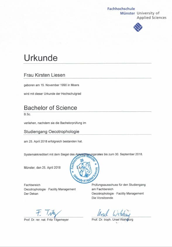 Bachelor of Science (B. Sc.) in Ökotrophologie